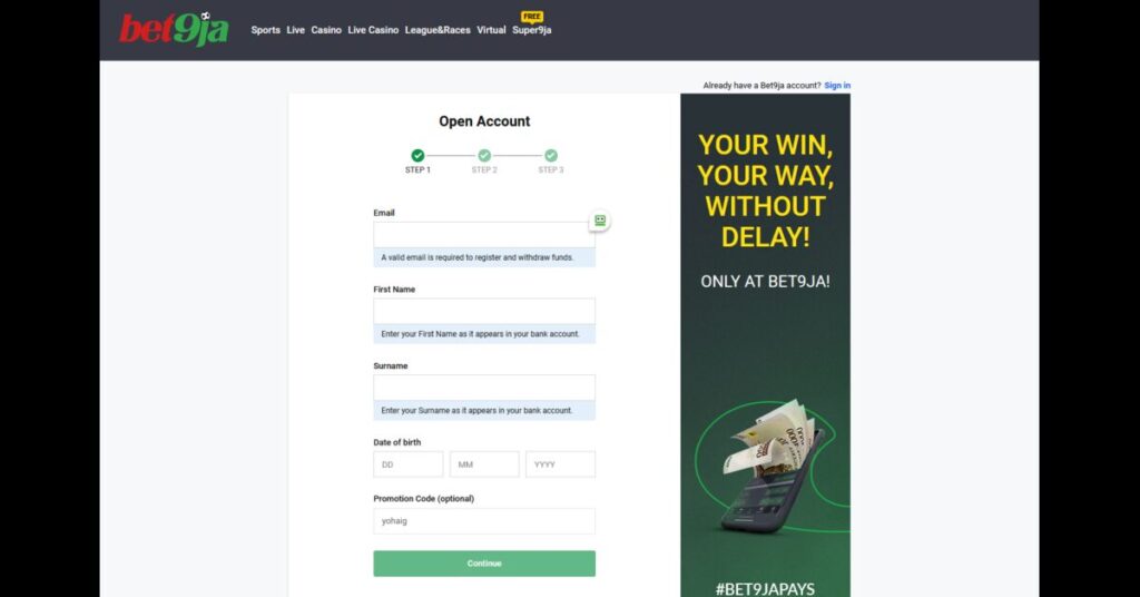 The Bet 9ja coupon code this 2026 is YOHAIG.